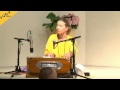 Vani Devi singt im Satsang das Lied Nr. 562 "Om Sat Chit Ananda" aus dem Kirtanheft.